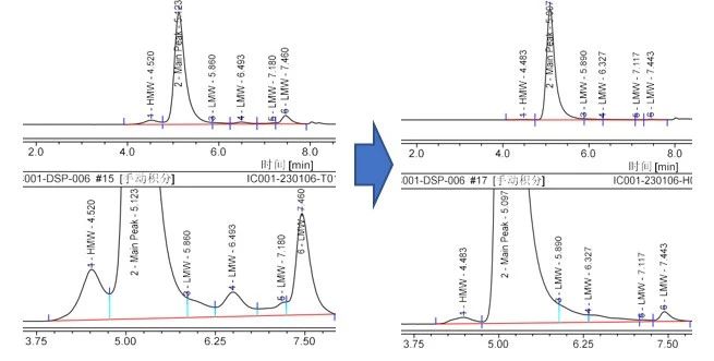 在細(xì)胞株構(gòu)建階段,漢騰生物研發(fā)團(tuán)隊(duì)選擇了具有最高穩(wěn)定性和特定生產(chǎn)力的CHO細(xì)胞系作為最終的先導(dǎo)克隆,并且通過調(diào)節(jié)載體比例改變產(chǎn)生的抗體滴度。漢騰生物IgMaxTM表達(dá)載體平臺(tái)最高可以達(dá)到8g/L的產(chǎn)量,并且IgM構(gòu)型均一,其中,五聚體比例接近100%,幾乎無六聚體產(chǎn)生(IgM有五聚體和六聚體形式,包含開放J鏈的五聚體形式是開發(fā)和生產(chǎn)IgM的目標(biāo)構(gòu)型)。