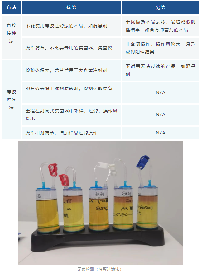 無菌檢測的方法主要包括直接接種法和薄膜過濾法兩種: